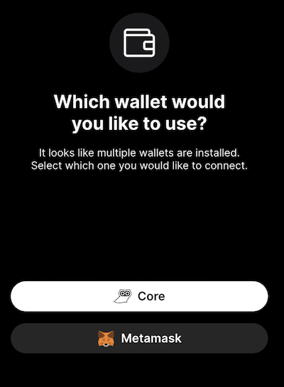 A pop up will ask which wallet to use. Select Core.